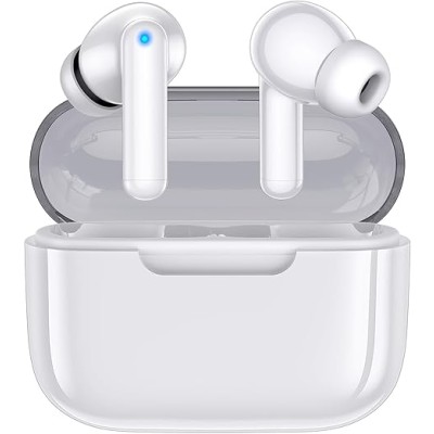 Wireless Bluetooth 5.3 In-Ear Lightweight Headphones with Deep Bass, 48 Hours of Playtime, Clear Calls, Microphone, Suitable for Sports, White