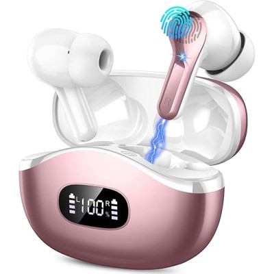 Wireless Earbuds, Earphones Bluetooth 5.3, Touch Control Noise Reduction Headphones for Work/Sport,HiFi Digital LED Display Charging Case, IP7 Waterproof Mini Ear Buds
