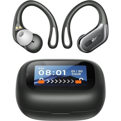 5.3 Inch Sports Bluetooth Earphones, Smart Digital Display, 36 Hours Playtime, IP54 Waterproof, Wireless Earbuds Lightweight Design, Suitable for Cycling, Running, Exercise (Black)